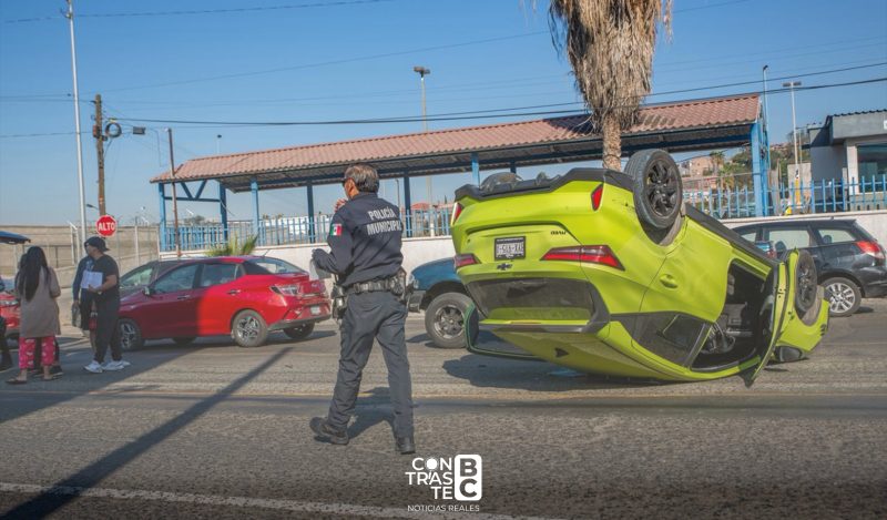Auto termina volcado tras choque entre tres vehículos en Baja Máq El Águila