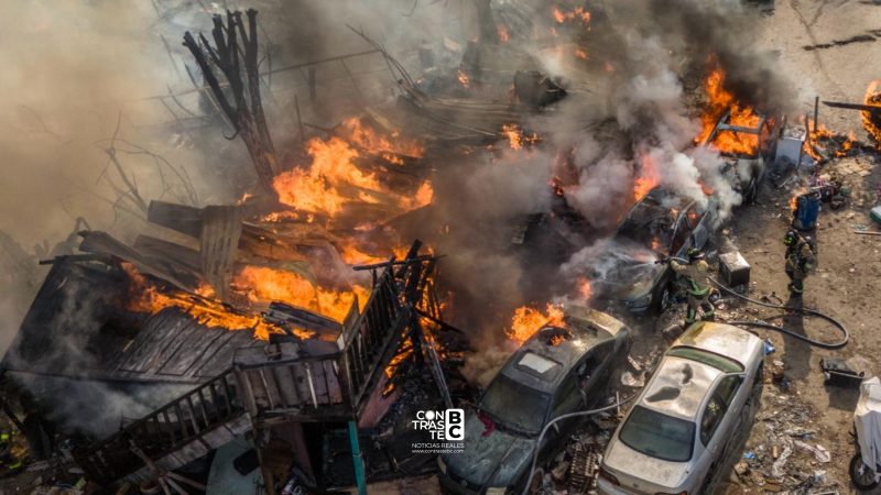 Incendio de gran magnitud deja varias viviendas calcinadas en Lomas Taurinas; un bombero resultó lesionado