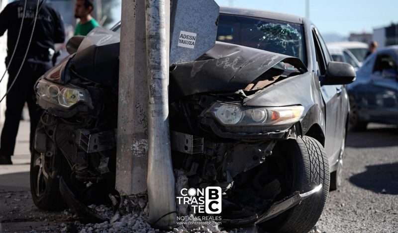 Choque contra poste exhibe riesgos cotidianos en calles de Mexicali