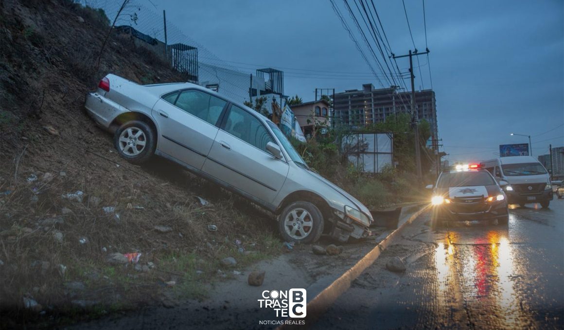 De acuerdo con los informes preliminares, el accidente ocurrió alrededor de las 6:15 de la mañana, cuando el pavimento mojado por las recientes precipitaciones, sumado a una posible falta de precaución y exceso de velocidad, habría provocado que el automovilista perdiera el control. El vehículo, un Honda Accord color arena con placas del Estado de Baja California (BZJ-121-A), salió del camino y quedó atascado sobre la ladera de tierra del cerro contiguo.