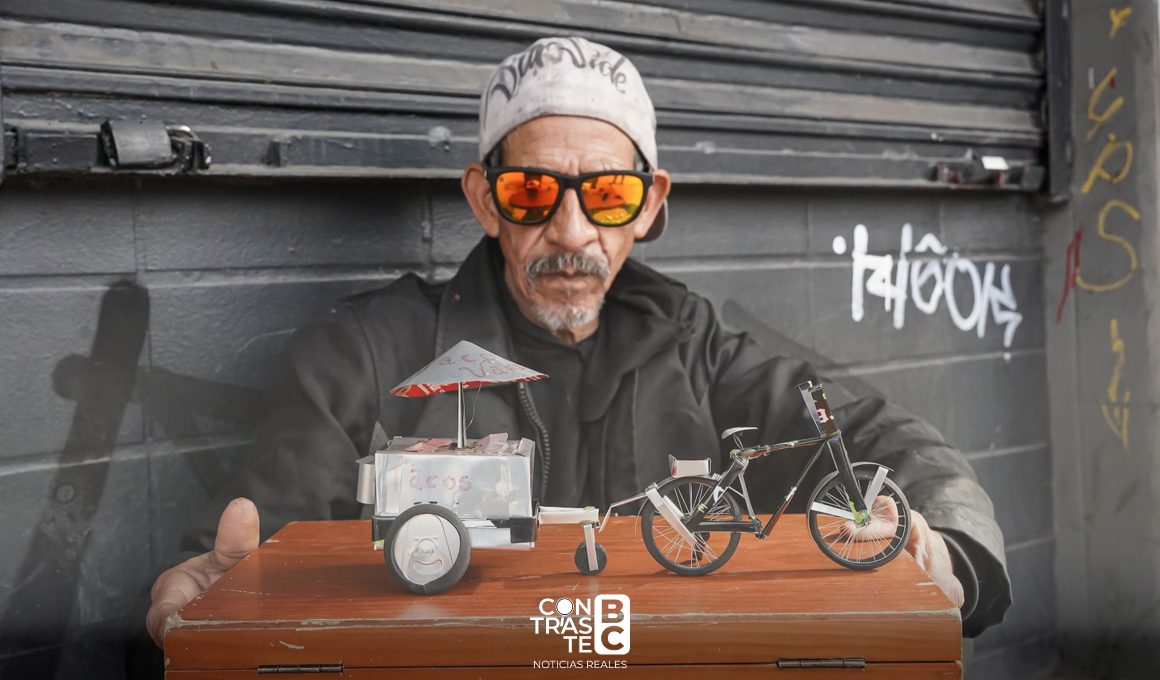 Tijuana, B.C..- En medio del bullicio del Centro de Tijuana, donde los pasos se cruzan con prisa y los vendedores improvisan sus espacios, un artesano trabaja con dedicación casi quirúrgica. Con tijeras, pegamento y latas de aluminio, Juan Carlos Mier convierte lo que otros desechan en diminutas piezas de arte: bicicletas, autos, motocicletas y figuras que sorprenden por su precisión y detalle.