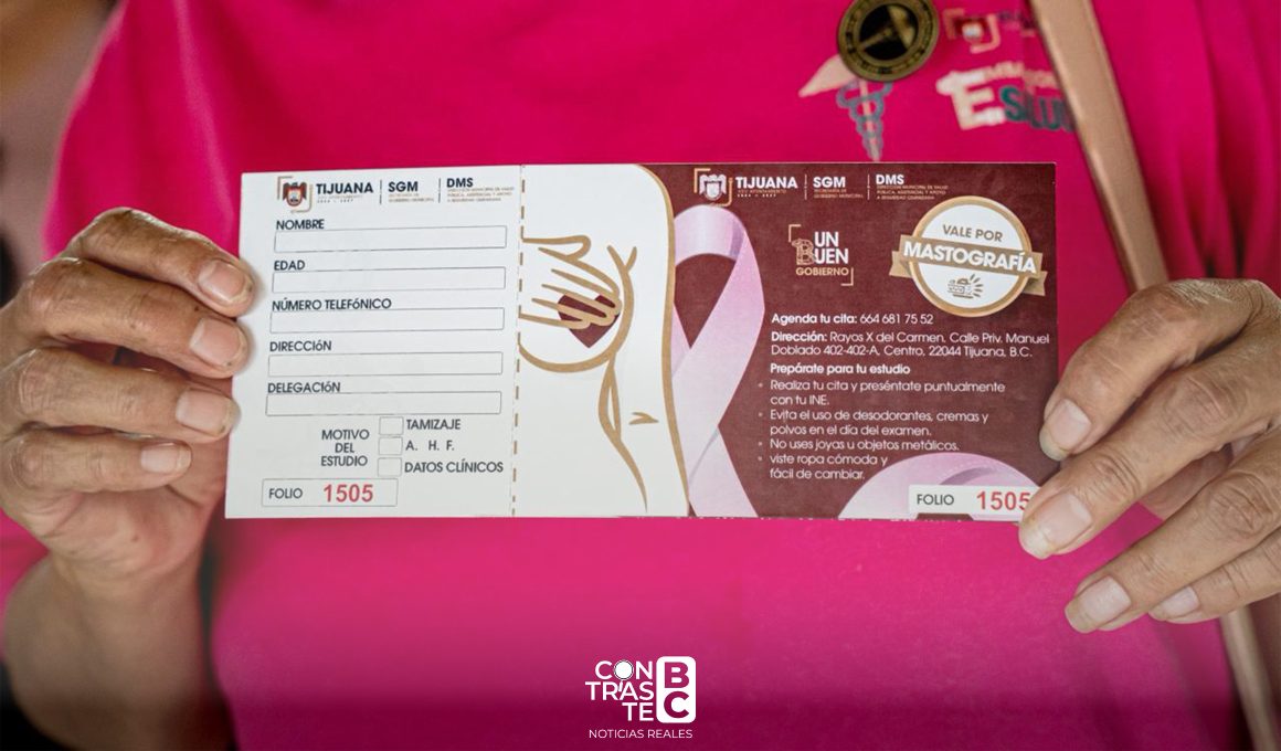 Tijuana, B.C., 22 de octubre de 2025.– En el marco del Mes de la Lucha contra el Cáncer de Mama, el Ayuntamiento de Tijuana, a través de la Sindicatura Procuradora, realizó un acto simbólico en el que se entregaron 300 vales para mastografías gratuitas, con el objetivo de fomentar la detección temprana y salvar vidas mediante la prevención.
