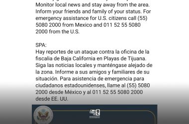 Local Seguridad1 min read EE. UU. emite alerta de seguridad tras ataque con explosivos a la Fiscalía de Tijuana
