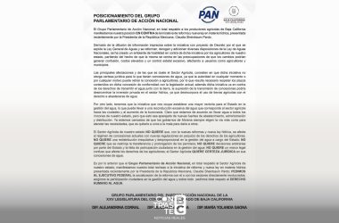 Politica Regional2 min read PAN Baja California rechaza reforma hídrica impulsada por la Presidencia; advierten impacto para agricultores
