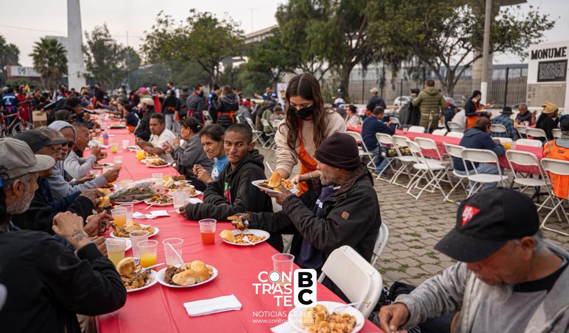 En el marco de las fiestas decembrinas, la Fundación Tijuana sin Hambre realizó una jornada solidaria en el Parque El Mapa, donde entregó más de 500 platillos calientes a personas en situación de calle y personas deportadas que se encuentran en la ciudad sin redes de apoyo ni acceso a albergues.