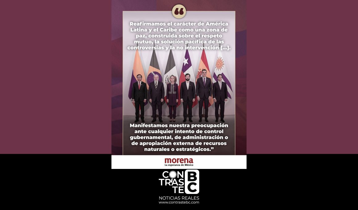 “América Latina y el Caribe no son territorio de disputa; son territorio de paz”, publicó la cuenta de Morena Sí, acompañando el mensaje con una imagen de mandatarios y representantes de gobiernos de la región. En el mensaje se subraya la necesidad de defender los principios históricos de soberanía, respeto mutuo y solución pacífica de controversias.