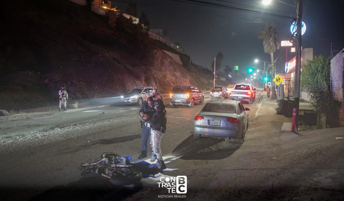 Tijuana, B.C., 3 de noviembre de 2025. — Un motociclista de 57 años perdió la vida la noche del domingo luego de ser impactado por un vehículo Audi cuyo conductor invadió el carril contrario en la colonia Emperadores, al sur de la ciudad.