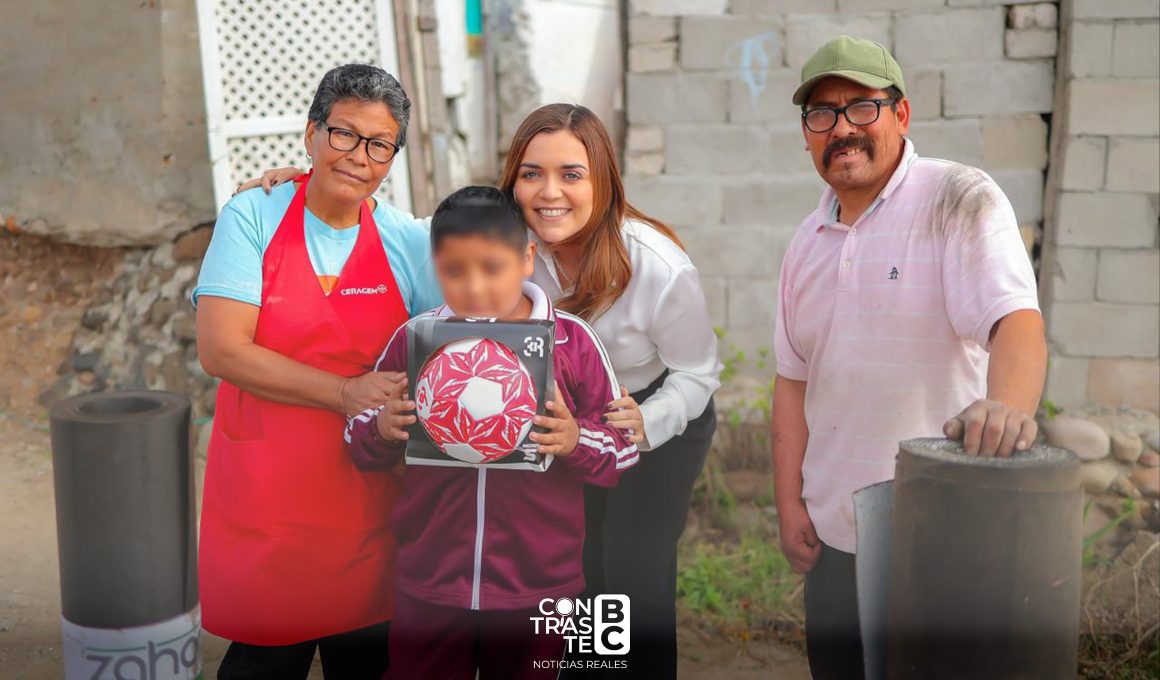 Por ello gestionó un apoyo integral y se trasladó hasta la colonia Granjas Familiares La Esperanza, donde entregó material para reforzar la vivienda ante la temporada de lluvias —entre ellos brea, felpa para techo y arenado— además de una mina de gas, despensas y un balón para el menor de la familia.