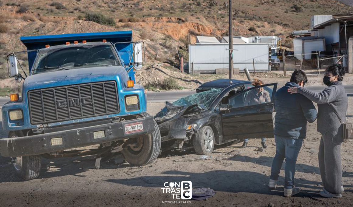 Según los primeros reportes, el conductor de un Honda Civic, color oscuro, circulaba en dirección a Playas de Rosarito cuando, por causas aún no determinadas, perdió el control de la unidad e impactó de manera directa contra la parte lateral del camión de carga. El golpe dejó al Honda incrustado y con el frente completamente destrozado, generando una dramática escena que hizo suponer inicialmente la existencia de lesiones graves.