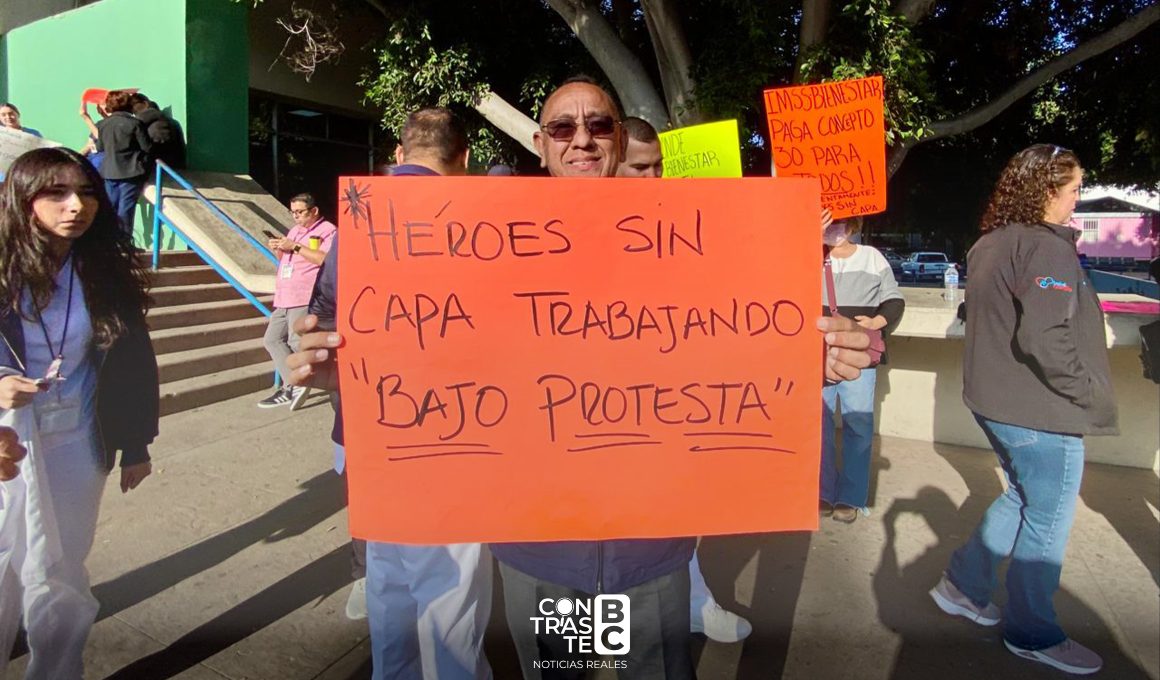 Tijuana, B.C. — Trabajadores de la Secretaría de Salud llevaron a cabo este lunes una asamblea en la explanada del Hospital General de Tijuana, donde exigieron al Gobierno del Estado y al IMSS-Bienestar mejoras en sus condiciones laborales, el cumplimiento de prestaciones pendientes y el abastecimiento de insumos médicos básicos.