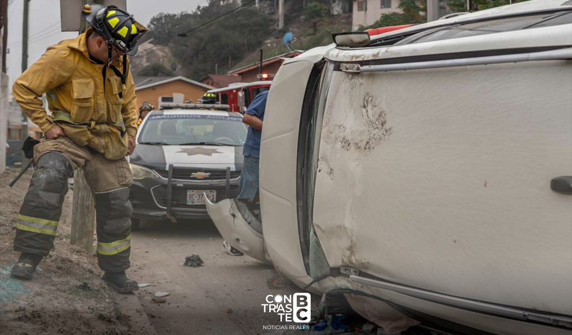 Tijuana, B.C., 3 de noviembre de 2025. — Un hombre de aproximadamente 40 años resultó con lesiones menores tras volcar su vehículo Nissan la mañana de este martes sobre la avenida Pinos de Nares, justo frente al Jardín de Niños Héroes, en la colonia del mismo nombre.